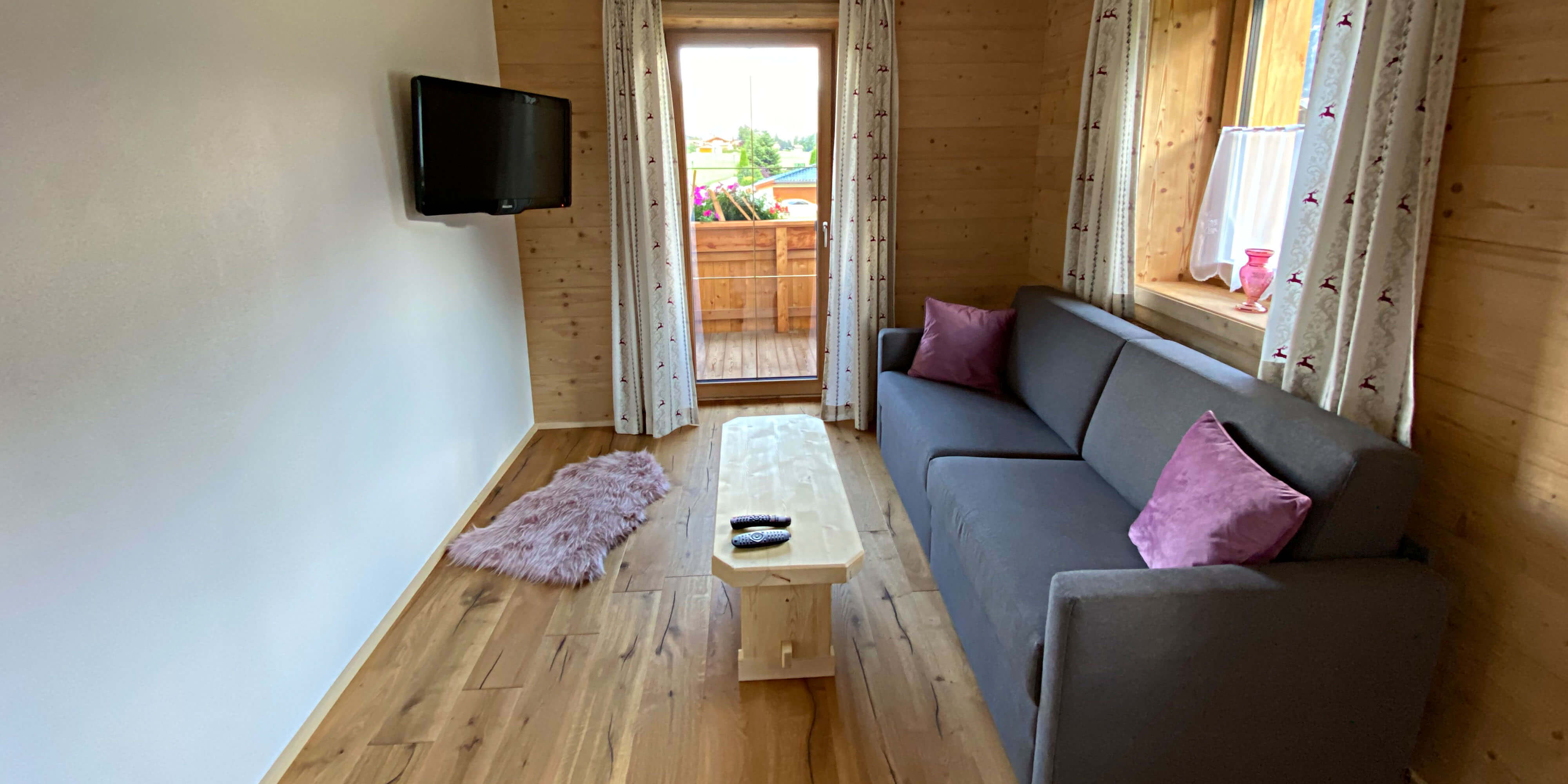 Böden aus Holz und Stein, Wände verputzt mit Kalk-Zement, mit Mineralfarbe geweißt innen und außen, mineralische Isolierung. Holz ist aus dem eigenen Wald und wurde selbst verarbeitet. Es wird bewusst auf chemischen Holzschutz verzichtet um unseren Gästen einen angenehmen wohltuenden Aufenthalt zu bieten. Wir bewirtschaften auch noch eine aktive biologische Landwirtschaft mit Tieren.